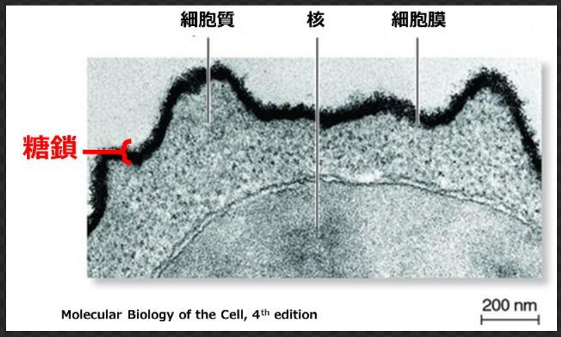 実際の電子顕微鏡写真での糖鎖は以下の通りです。